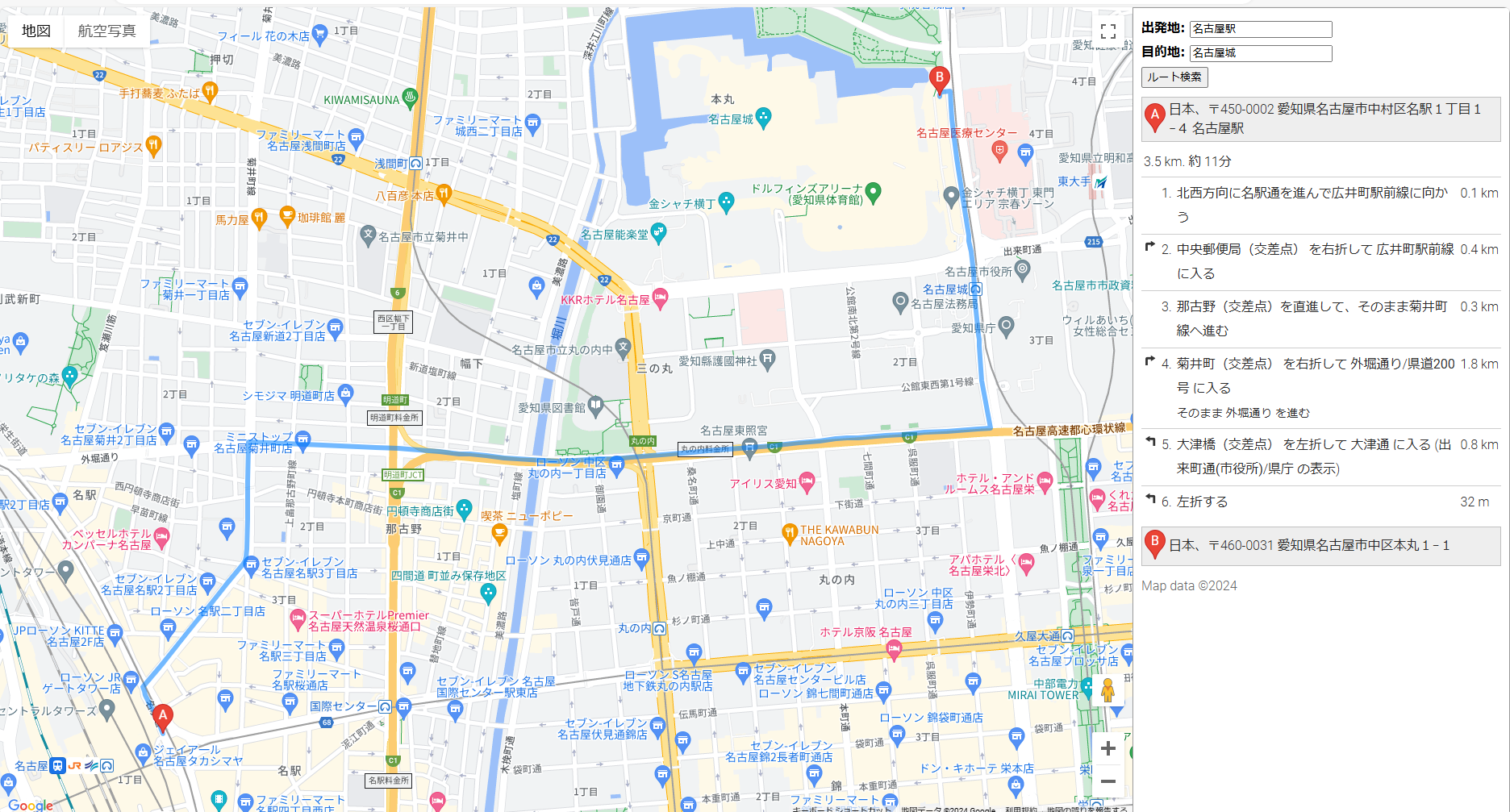 今回は、Google Maps APIのDirectionsServiceを使用して、出発地と目的地を入力して、ルート検索を行う方法を説明しました。