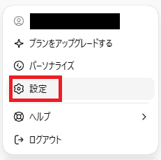 1.ChatGPT画面の左下「︙」→ 「設定」を選択。